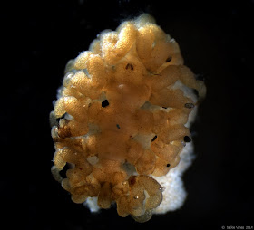 Viewed from below you can see the impressive number of embryos.  And if you look very carefully, you should be able to see something else that's notable.  Not all of the embryos are alike!