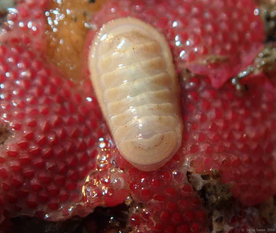 During the past few months we've taken a few photos of Leptochiton rugatus for the record. Here's a nice view of three individuals on a patch of Derby Hat Bryozoan (Eurystomella bilabiata):
